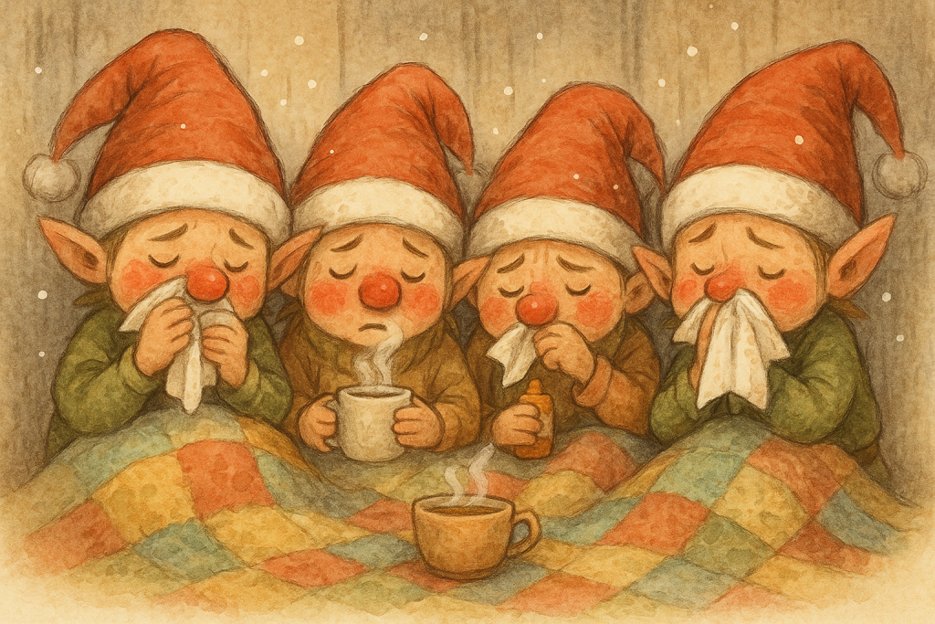Es war einmal ein kleiner Trupp von Wichteln, die jedes Jahr pünktlich zum 8. Dezember voller Elan Geschenke packten, Glöckchen polierten und Adventsschokolade sortierten. Doch dieses Mal – oh jemine – war alles anders.