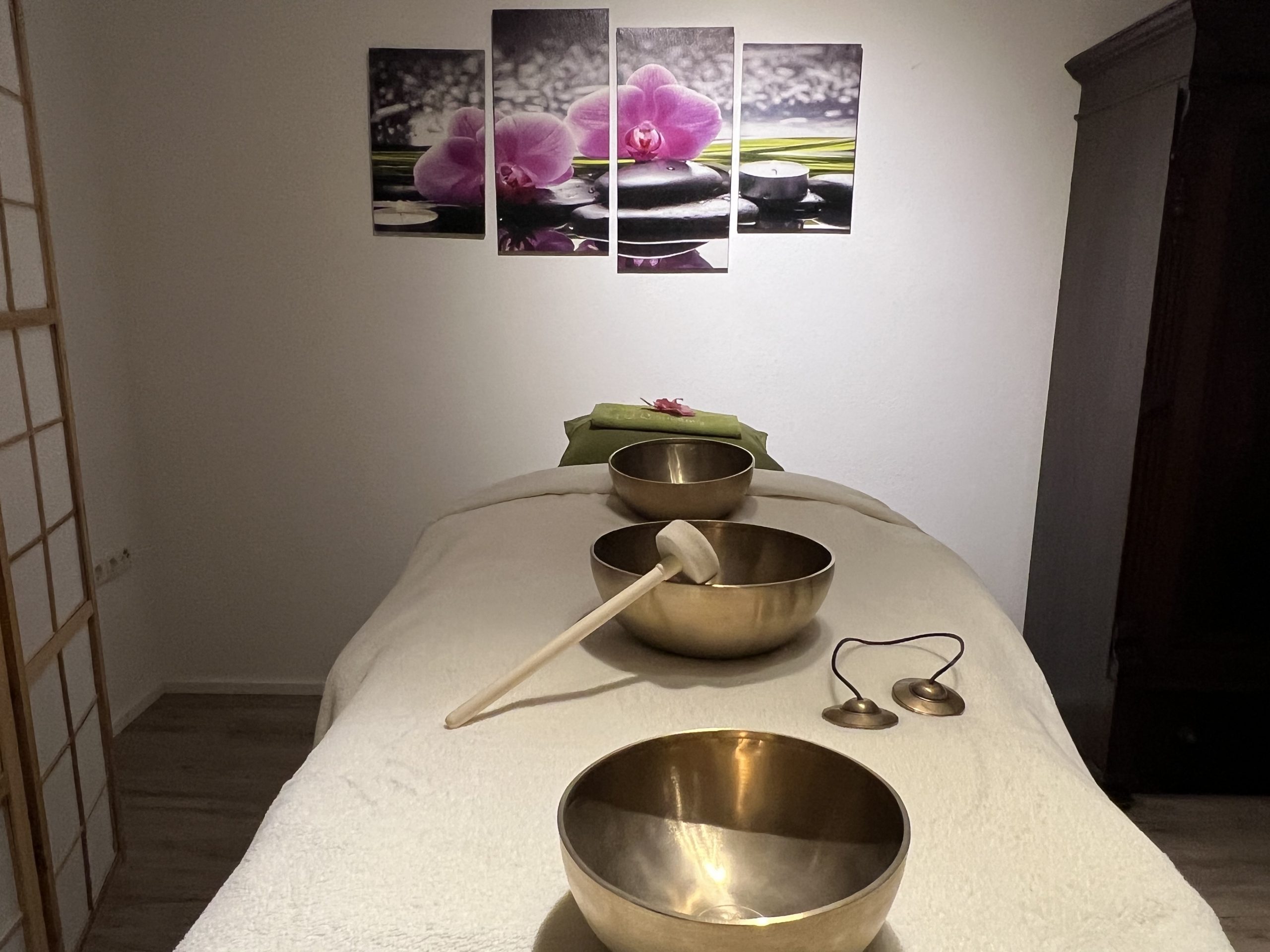 Erleben Sie die transformative Kraft der Klangmassage, bei der Klangschalen sanft auf Ihrem Körper platziert werden. Diese alten Instrumente erzeugen beruhigende Schwingungen und Töne, die nicht nur den Geist entspannen, sondern auch eine tiefgreifende positive Auswirkung auf Ihre Zellen und den gesamten Körper haben.